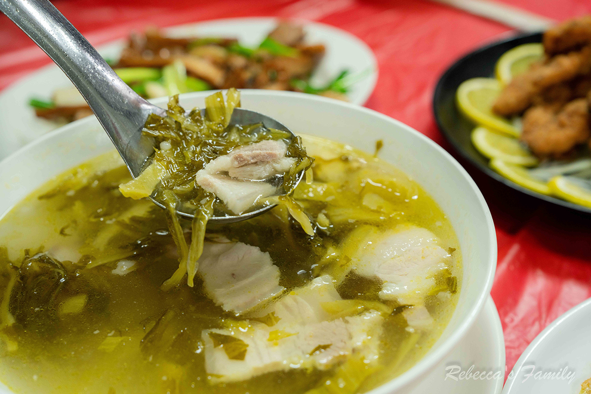 這道可以說是客家菜經典中的經典。福菜的酸香搭配帶點油脂的肉片,湯頭非常開胃。讓我們最驚訝的是恩寶竟然超愛這碗湯,連喝了三碗完全出乎意料,看來小孩的味蕾有時真的很難預測。