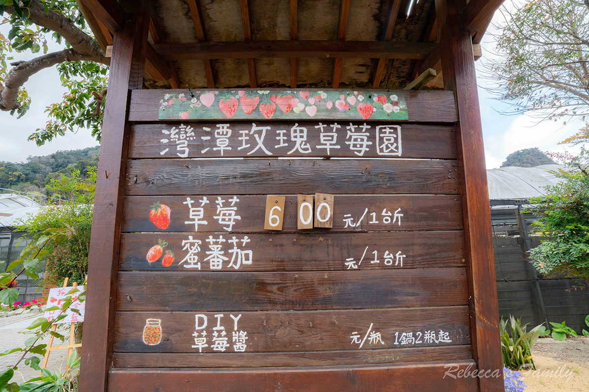 灣潭玫瑰草莓園腹地不小,分成土耕區與高架區,對帶小孩的家庭來說相當友善。園區有提供停車位,但數量有限建議早點抵達。入口處會清楚公告當日的草莓秤重價格,資訊透明不怕踩雷。