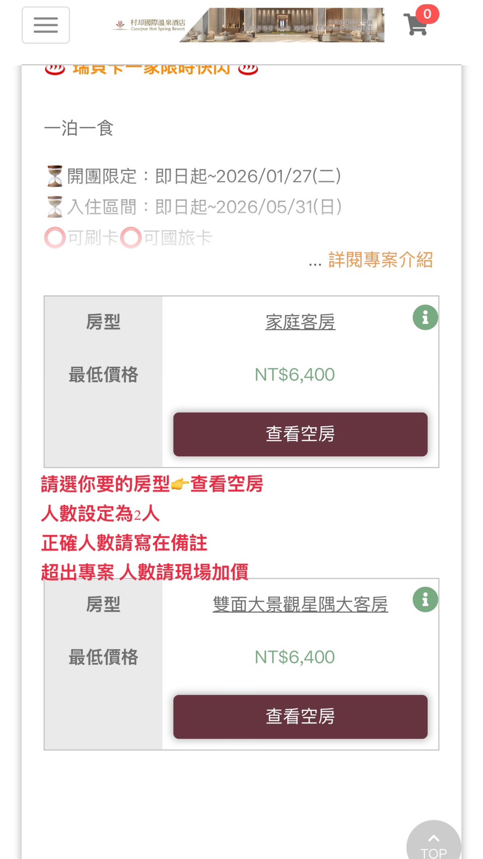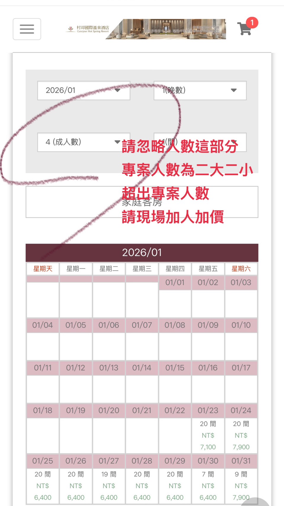 注意!! 訂房系統不會加人加價,超出專案人數,請於現場補足差價