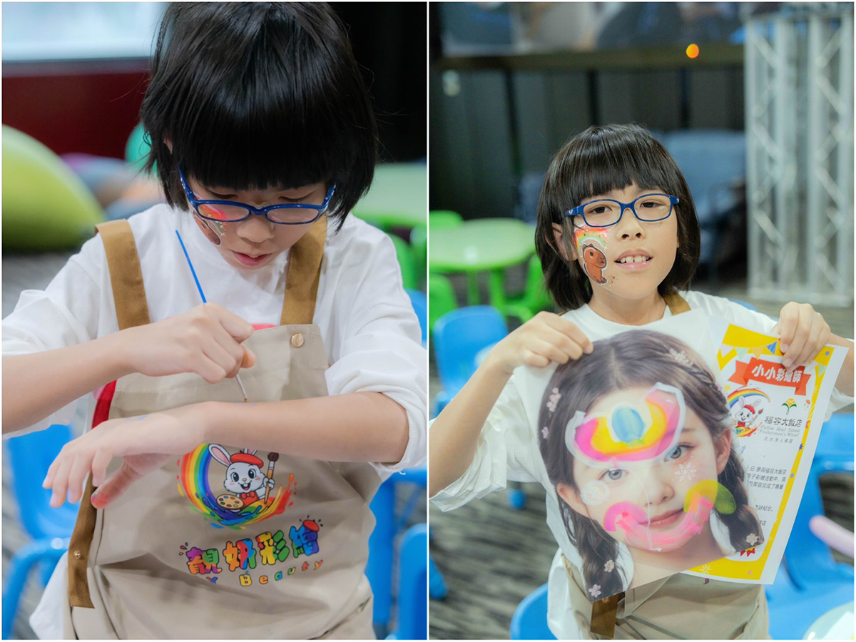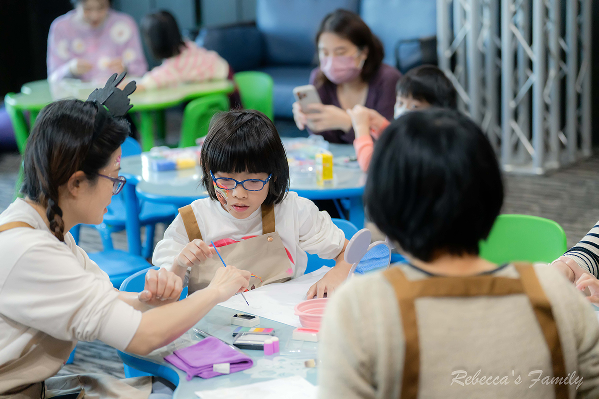 有專門的老師從基本的筆法教起,全程使用安全的水性顏料,恩寶在自己的手被畫了一個多拉A夢在手臂上。方案內容是一大一小,要價650元。