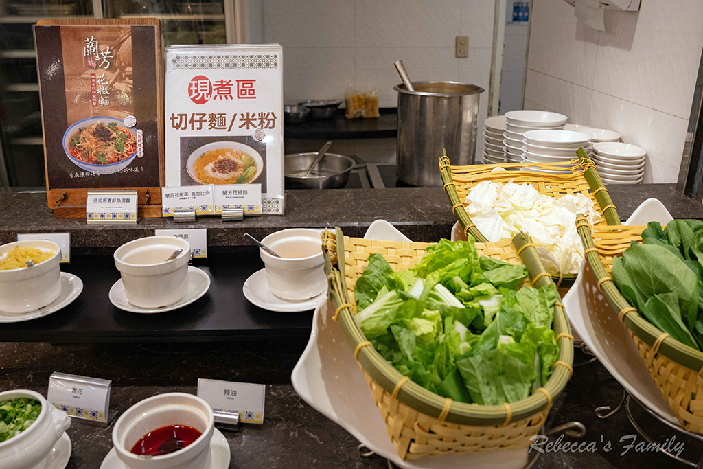 福容的早餐向來很豐富,淡水魚丸、粉漿蛋餅端上台,還有名店蘭芳椒麻麵。