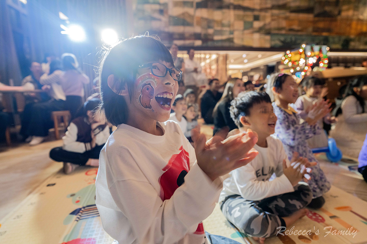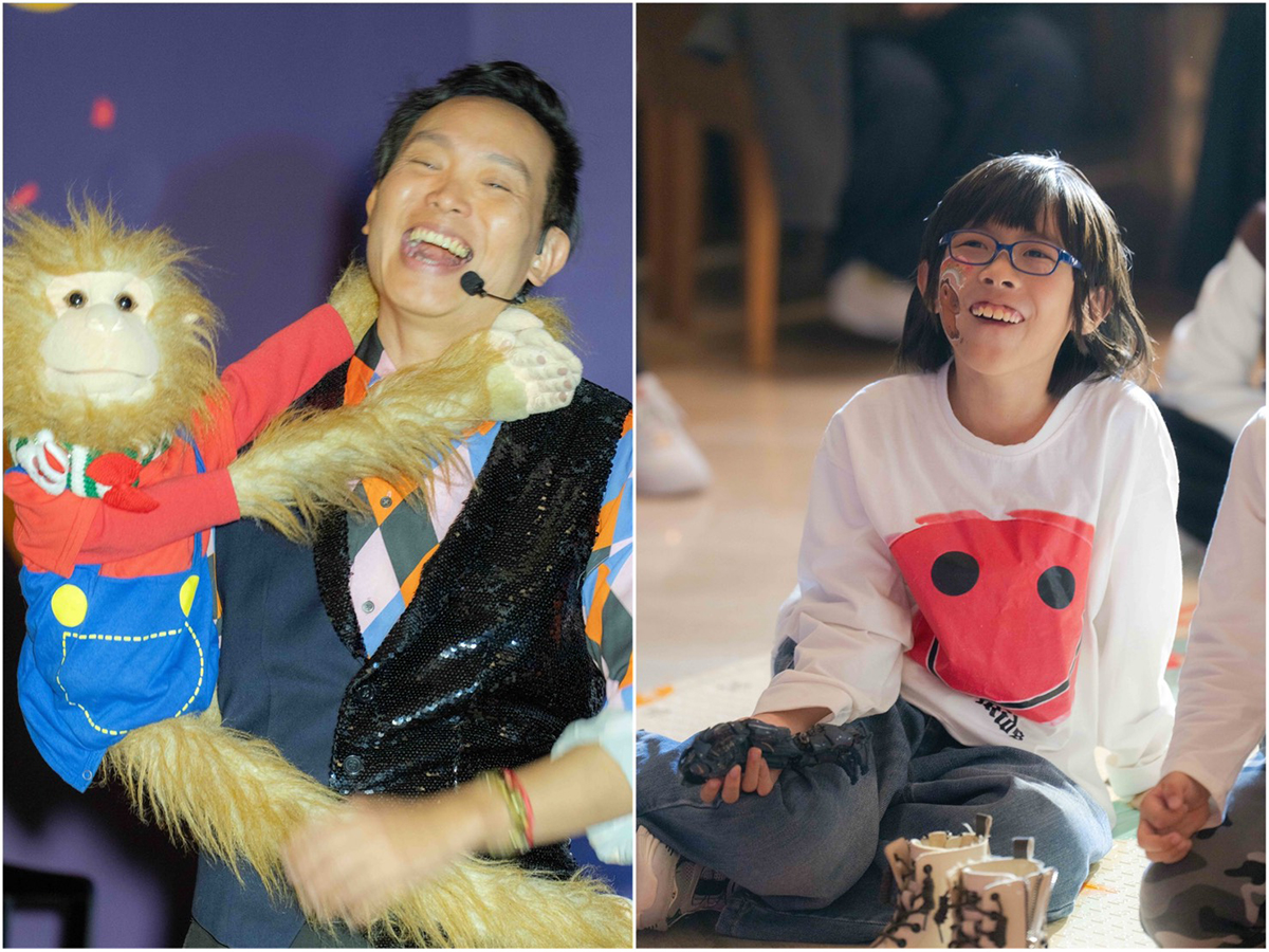 舞台上有魔術師表演腹語、折氣球,逗得現場大人小孩哈哈大笑。