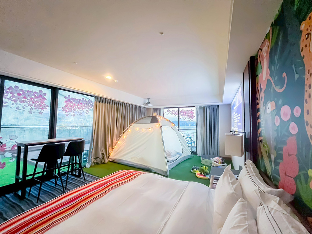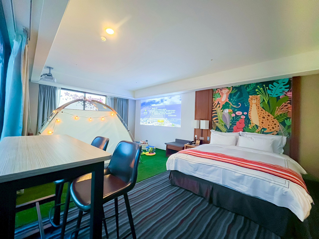 - 露營主題房:房內有帳篷、有投影機、積木,直接睡帳篷超開心