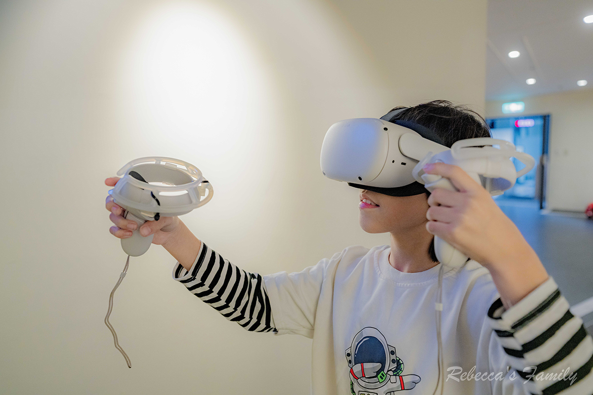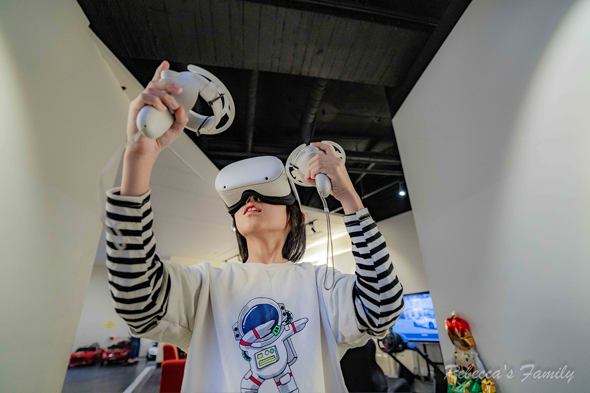 VR虛擬實境在SWITCH旁有兩台VR遊戲機,需要年滿八歲才能玩。恩寶第一次玩VR就上手,看他手舞足蹈的模樣真是玩到欲罷不能。
