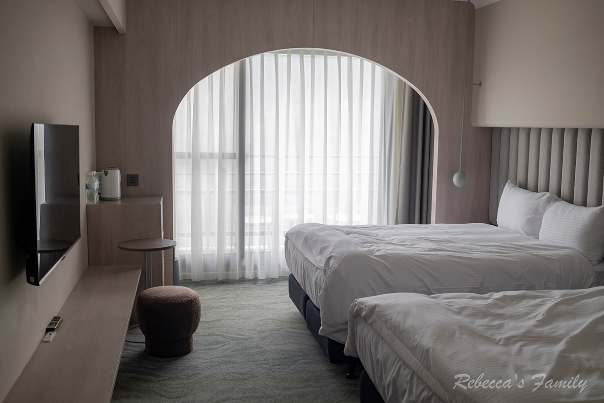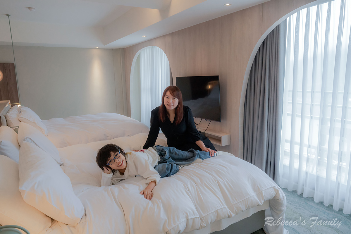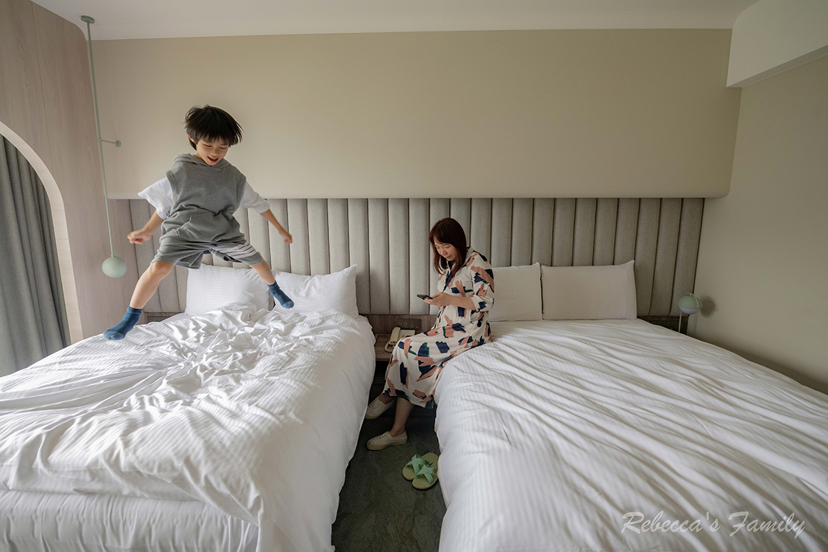 飯店9-11樓都是新房型,我們住的是9樓的高級家庭房,有8坪大的空間和兩大床,整體氛圍非常舒服,我們一家三口剛剛好。