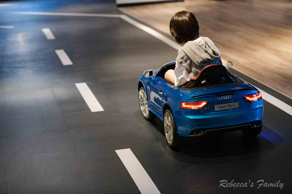 恩寶開著車車朝各區前進,沿途經過球池、積木桌遊區、健身房。飯店也會不定時更新兒童電動車的車款。