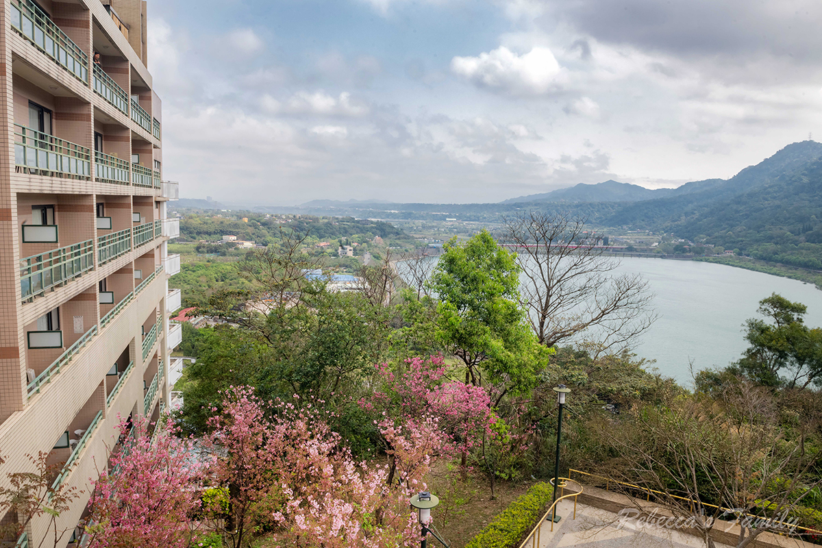 窗外就是石門水庫,走到陽台就能欣賞水庫的湖光山色,令人心曠神怡。