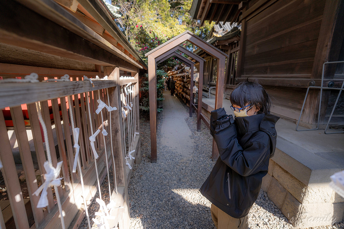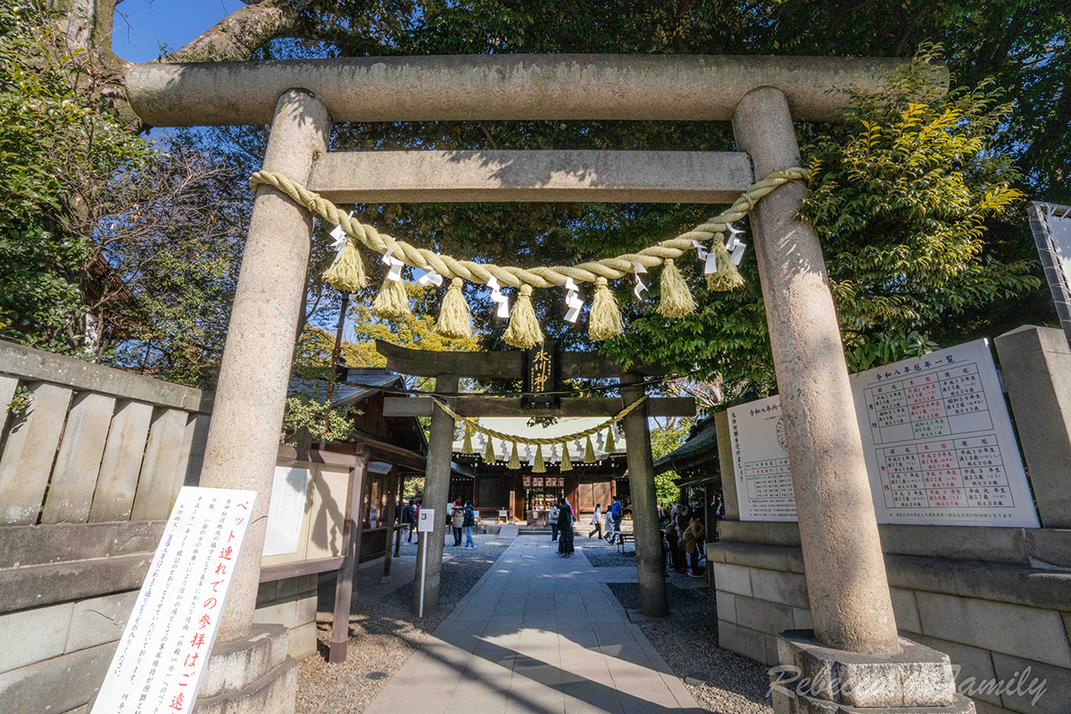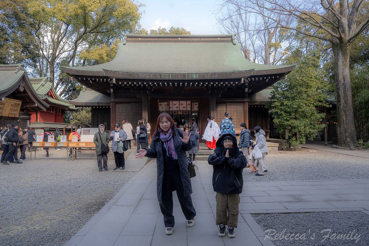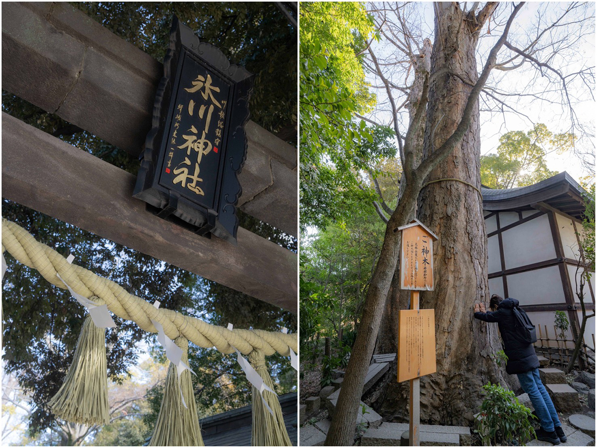 擁有1500年歷史的冰川神社,是日本「七五三」節祈福的的熱門地點,每年11月中旬,家長會帶孩子來神社替3歲(男孩 / 女孩)、5歲男孩、7歲女孩祈福,希望他們能健康平安長大,因此常會看到全家都穿上正式的和服來這邊拍照。