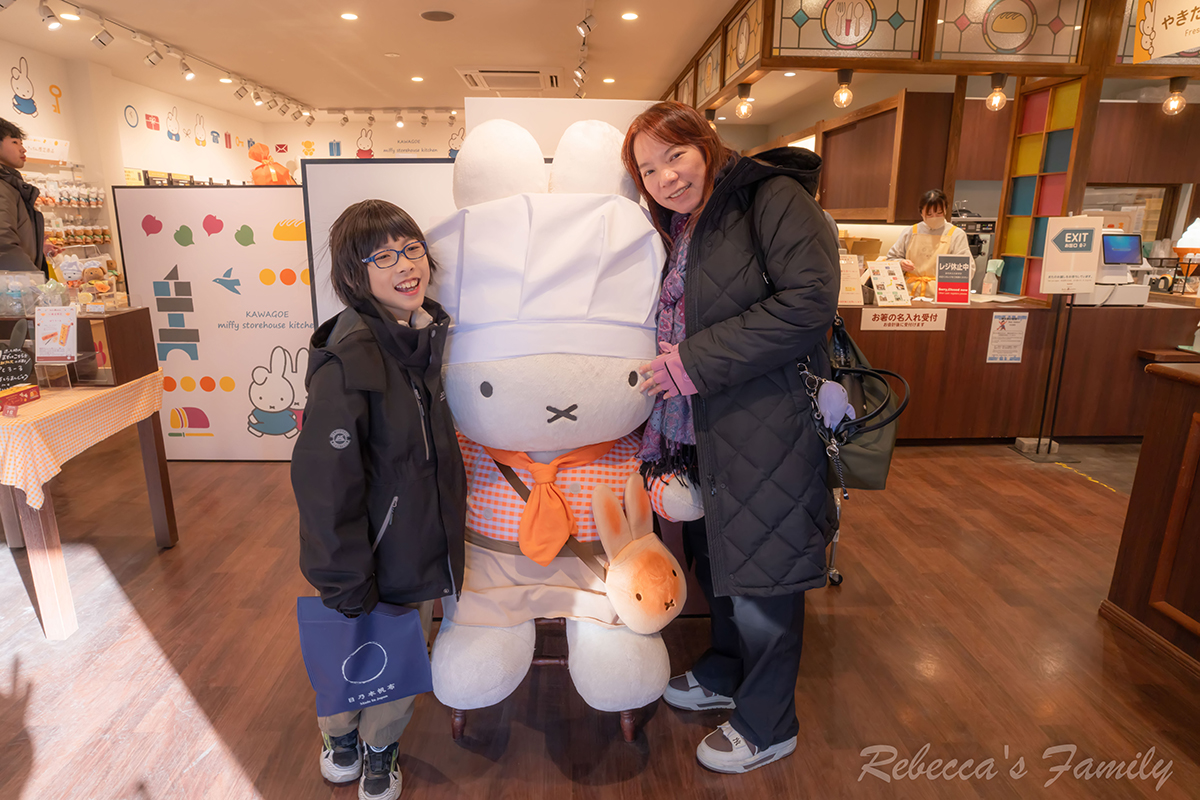 像時之鐘固定報時、冰川神社釣鯛魚御守、菓子屋橫丁裡的傳統零食,都是恩寶會感興趣、也能參與的體驗;而藏造老屋街、大正浪漫夢通則讓恩寶爸照片拍到爽。老字號的小川菊鰻魚飯,還是造型可愛的 Miffy Bakery都是色香味俱全。