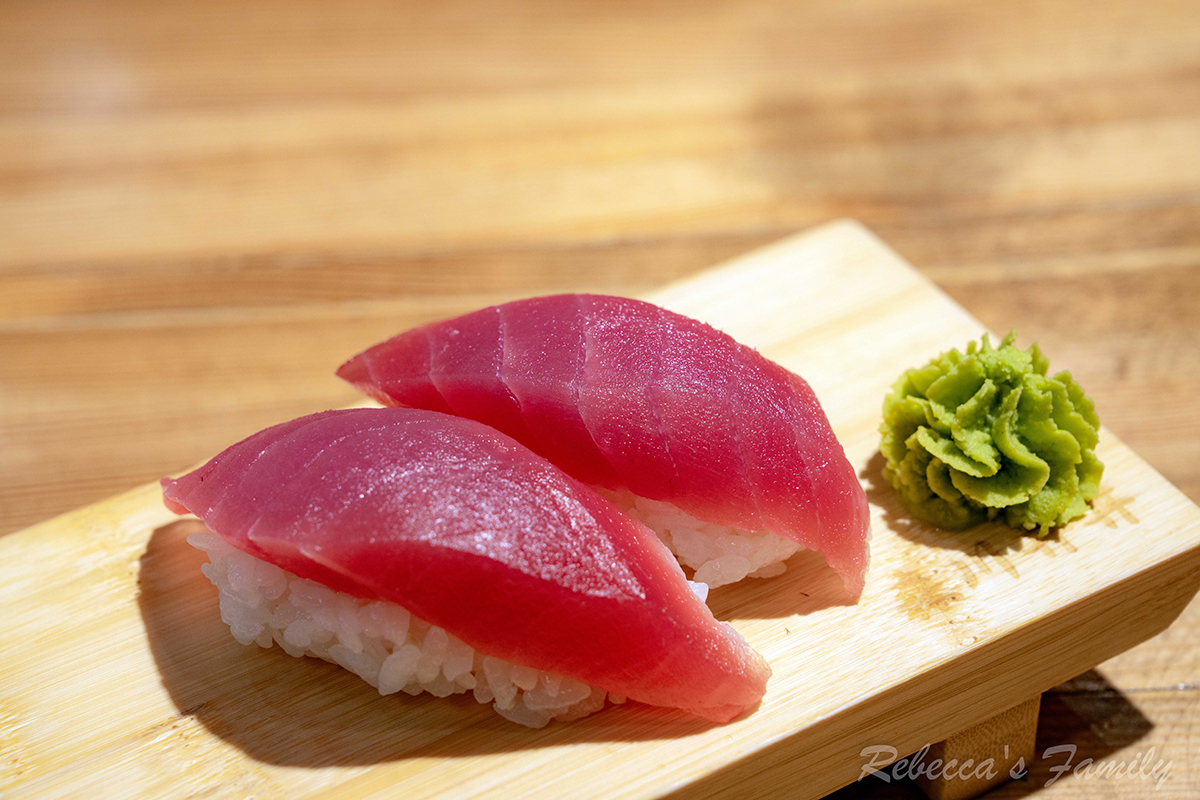 軟嫩帶點鮮甜的鮪魚肉配上醋飯是恩寶的最愛。對大人來說,假如能沾些哇沙米我想會更合味!