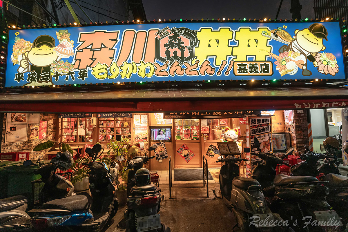 位在嘉義體館附近的「森川丼丼」是一間連鎖日式居酒屋,它以濃厚的和風意象裝潢與多樣化的日式料理深受饕客喜愛。從招牌丼飯、生魚片、壽司、手卷到串燒,每一道都展現出店家的用心與水準。即使店內座位不少,仍常常一位難求,沒有事先預約幾乎吃不到。瑞貝卡一家品嚐多道經典菜色,無論是份量、口味或整體表現我們一家覺得還不錯吃,難怪能成為當地的排隊名店。