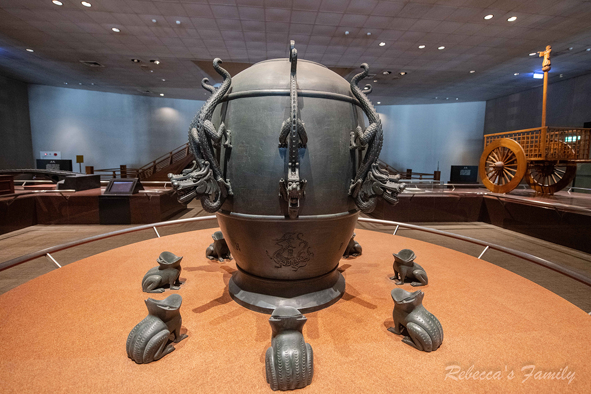 西元132年,東漢張衡發明了「侯風地動儀」,這是世界第一台地震儀,比起西方的地震儀要早上1700多年。因為東漢戰火的關係早已失傳。目前展場的地動儀是根據考古學家王振鐸根據後漢書的描述,於1951年復原的形式。