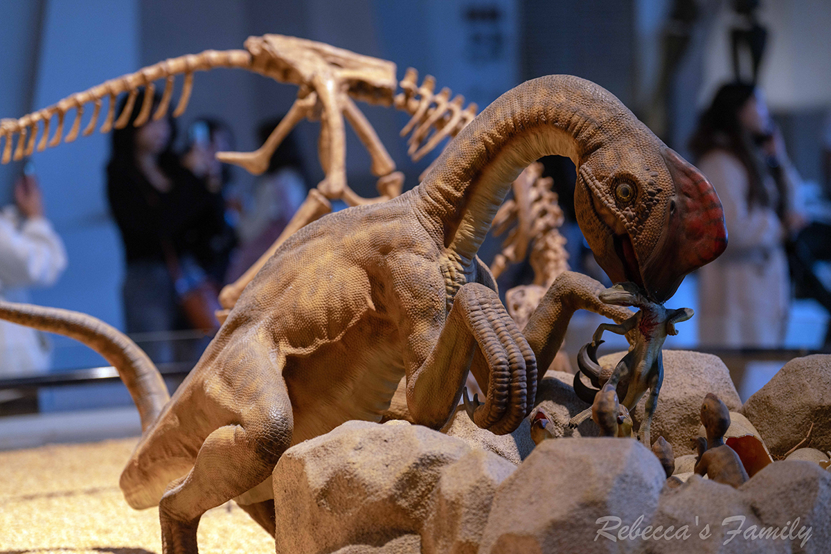 恐龍時代裡一隻長7公尺、高4公尺的暴龍是生命科學廳的人氣王,此外像是迅猛龍等模型還會左右擺動呢!