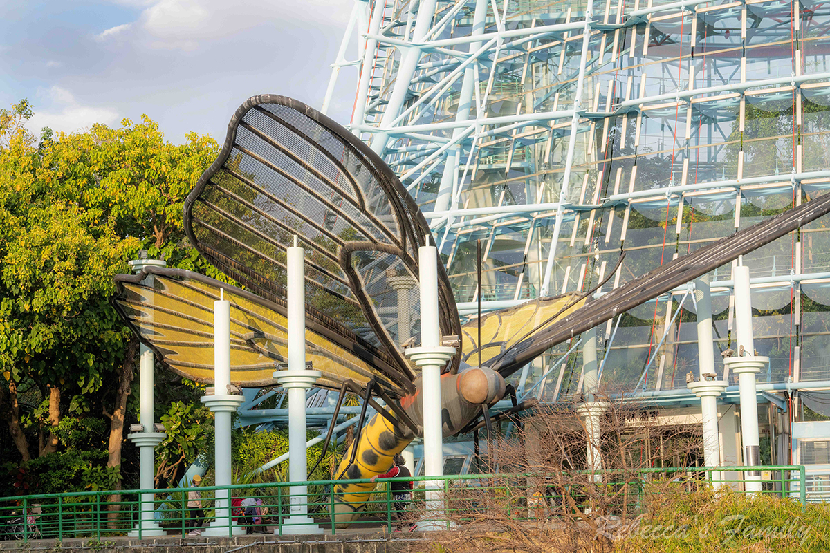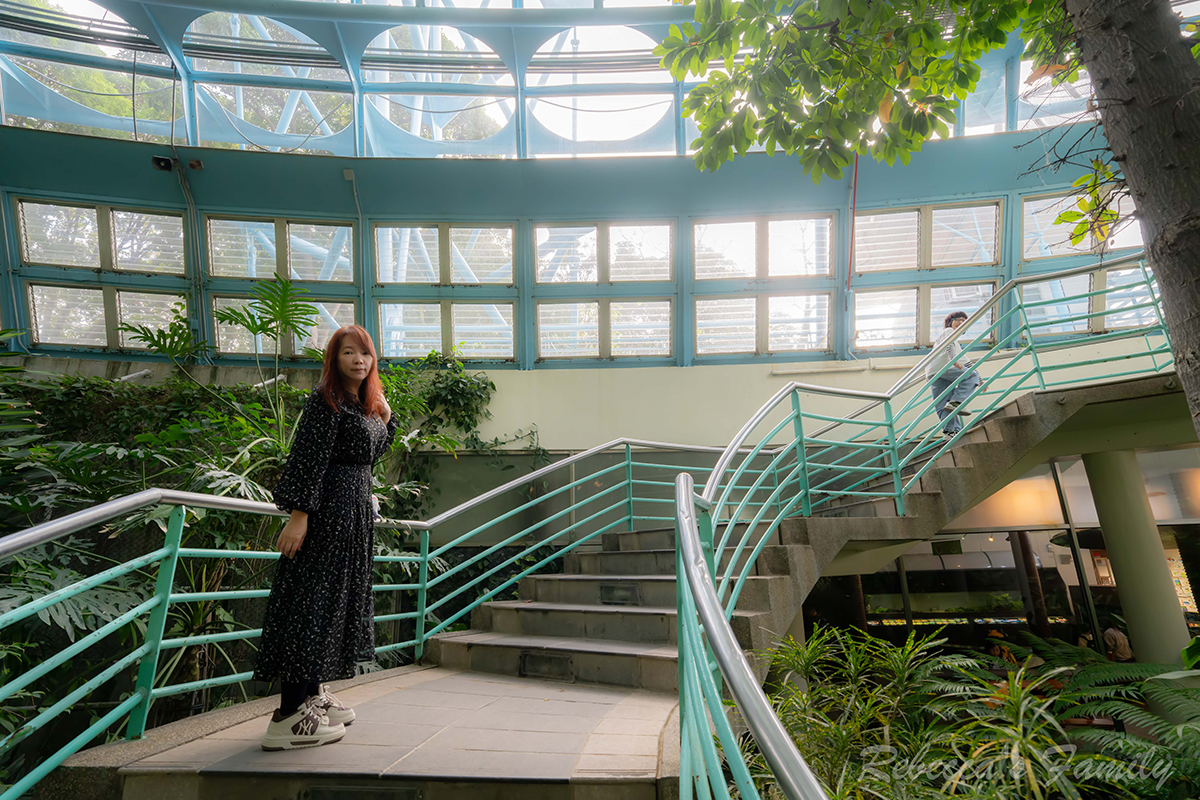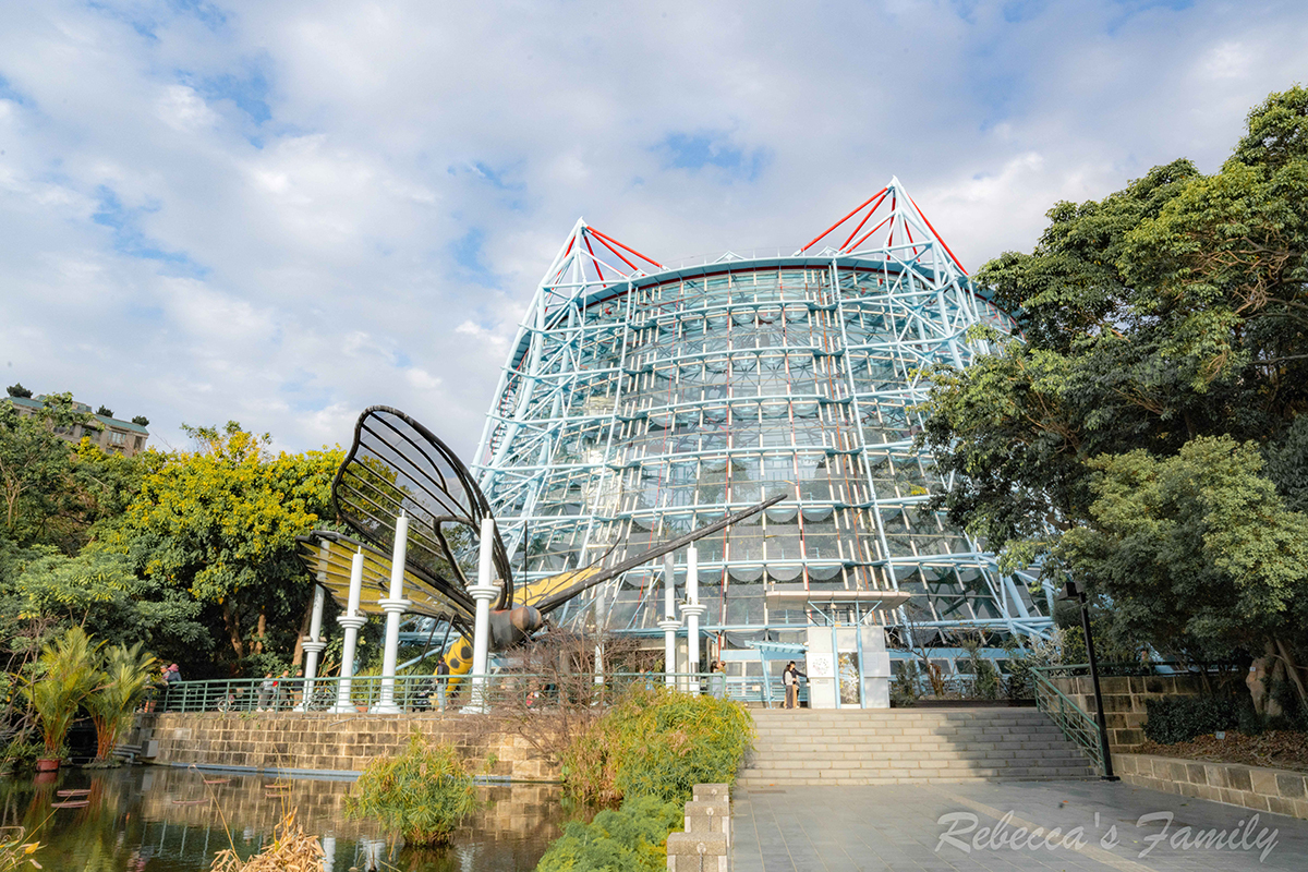 遠遠就能看見一棟水藍色的鋼構溫室,位在人類文化廳的對面需要越過西屯路。
