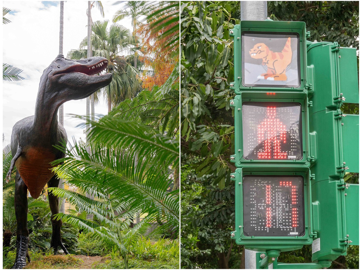 台中科博館周邊的人行號誌還用暴龍圖示,等紅燈的時候暴龍還會噴火呢相當有趣!