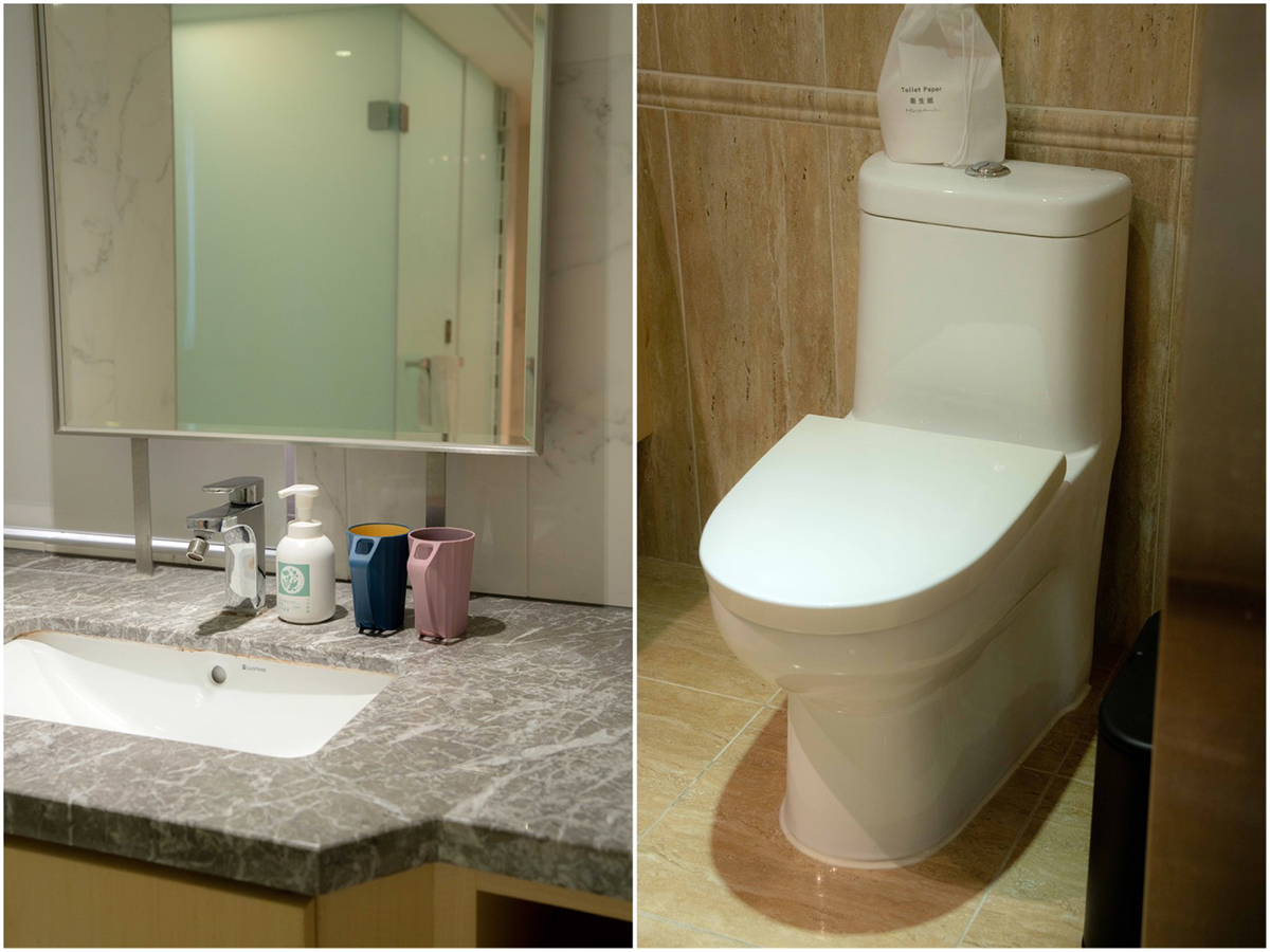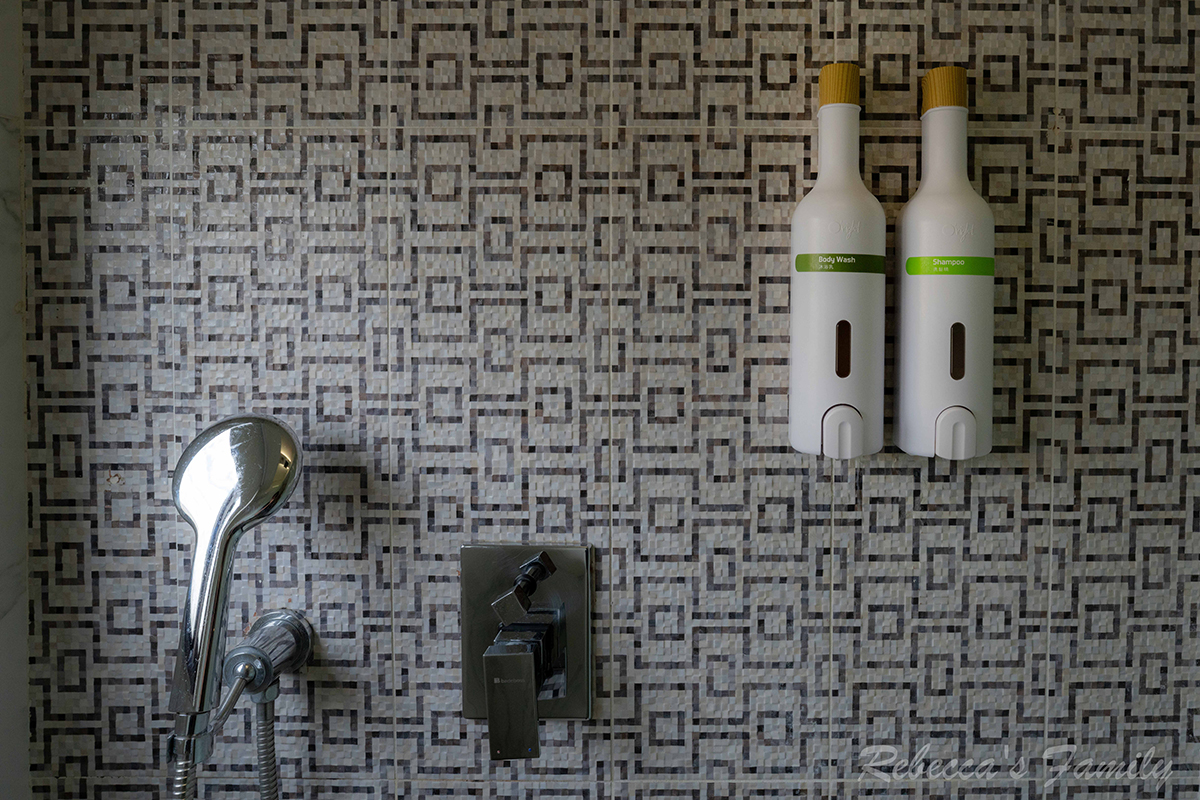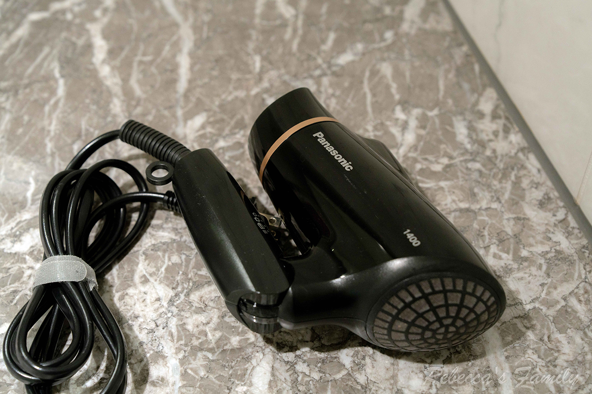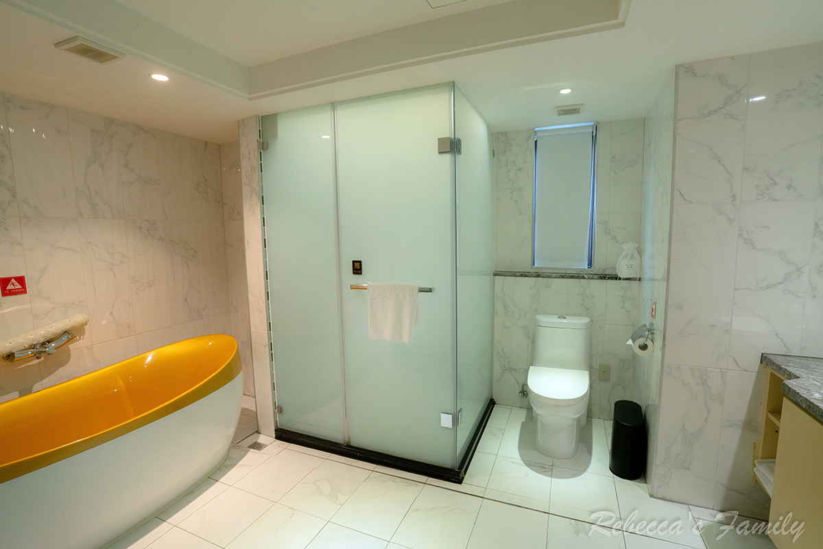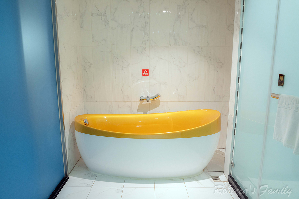 蓮蓬頭、花灑的乾濕分離衛浴空間,另有蛋形浴缸,以及傳統(非免治)馬桶座、歐萊德的壁掛式洗沐備品。旅店提供的吹風機我覺得風量偏小,可以帶自己的會比較順手。