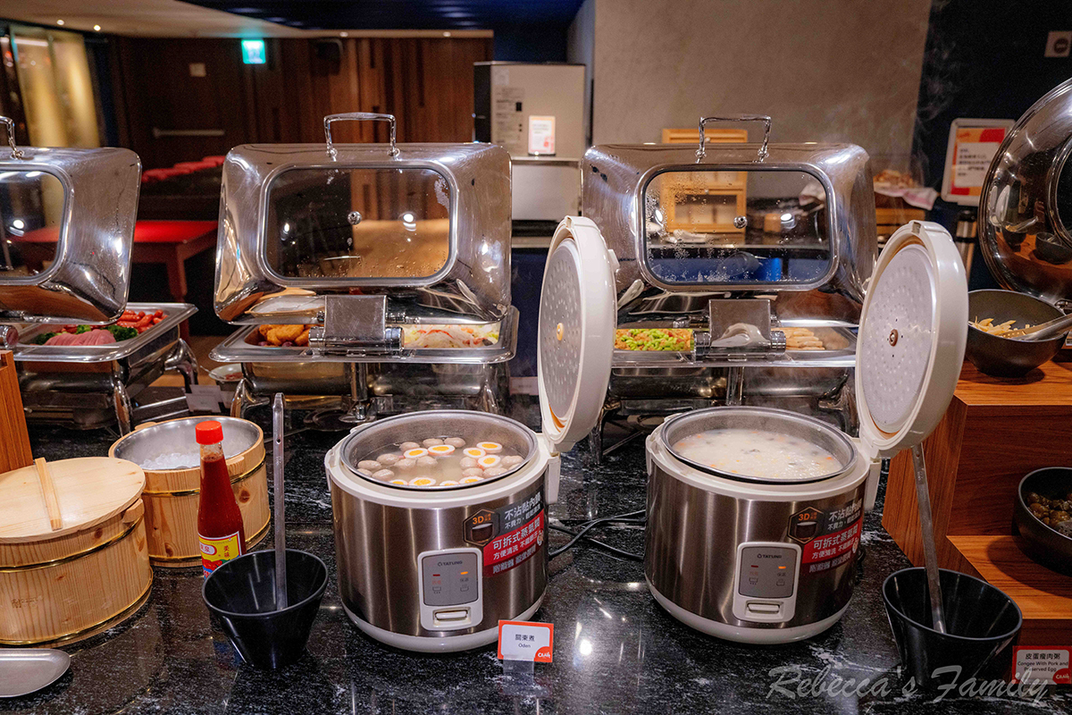 以中式餐點為主,當然也有生菜跟麵包,皮蛋瘦肉粥跟關東煮還不錯吃,甚至還有豆花呢(菜色以旅店現場供應為準)。