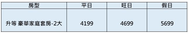 - 每房含加價至多入住4大2小