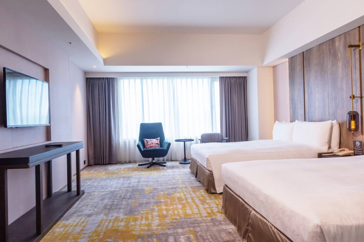 白色的建築外觀中規中矩,2021年6月完成八種房型299間客房改裝,結合現代潮流與LOFT開放式設計的輕工業風,給人耳目一新。