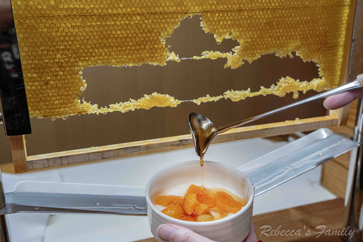 流著蜜汁的蜂巢片,取下一小塊擱在麵包上沾著吃風味絕佳,也能淋在優格上面搭著一起吃,早餐buffet有這麼大手筆還第一次遇到。
