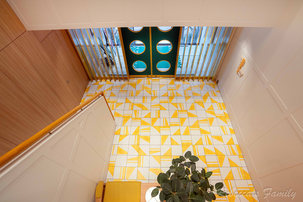 地毯圖樣取自大正時代常見的圓弧與幾何圓點元素,和洋風格融合在一起,讓整個空間呈現出一種新舊交錯的復古美感,細節還蠻耐看的。