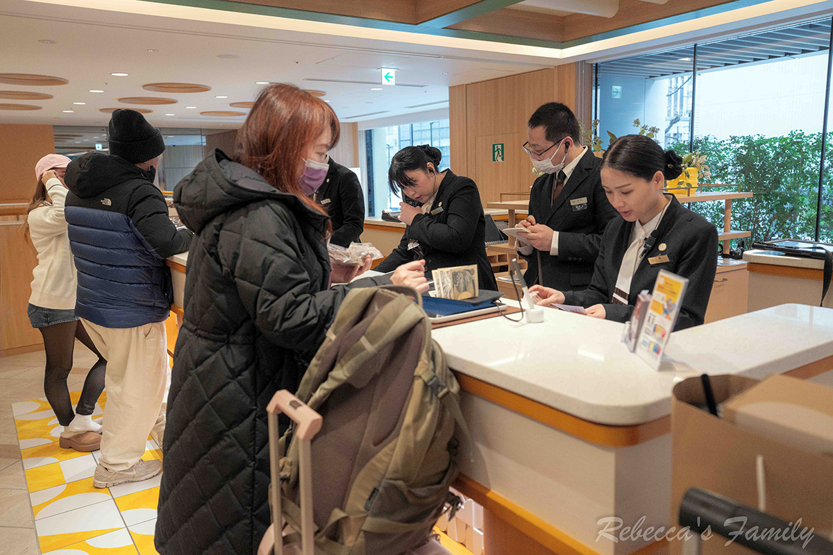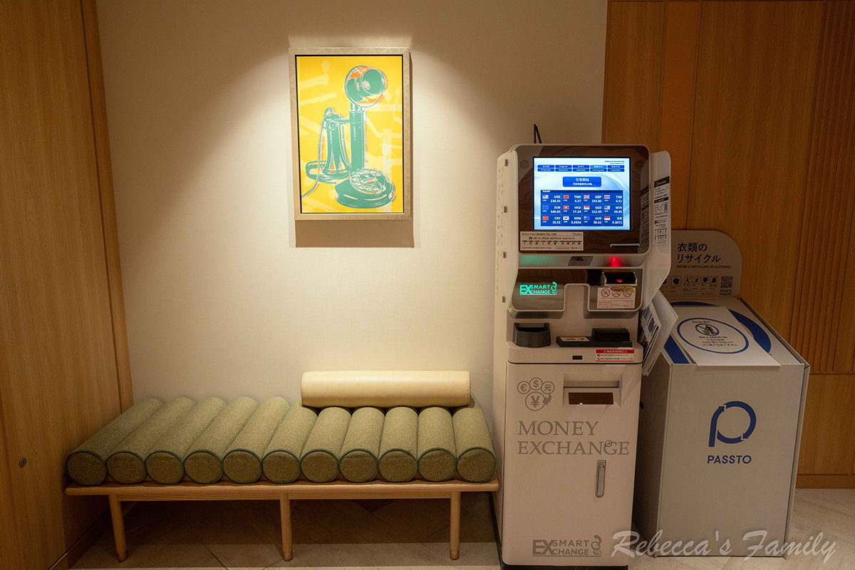 除了人工櫃檯,也有自助報到機,掃描護照即可取房卡;一旁還有自動換匯機,對外國旅客非常友善。若提早抵達,也可先寄放行李。