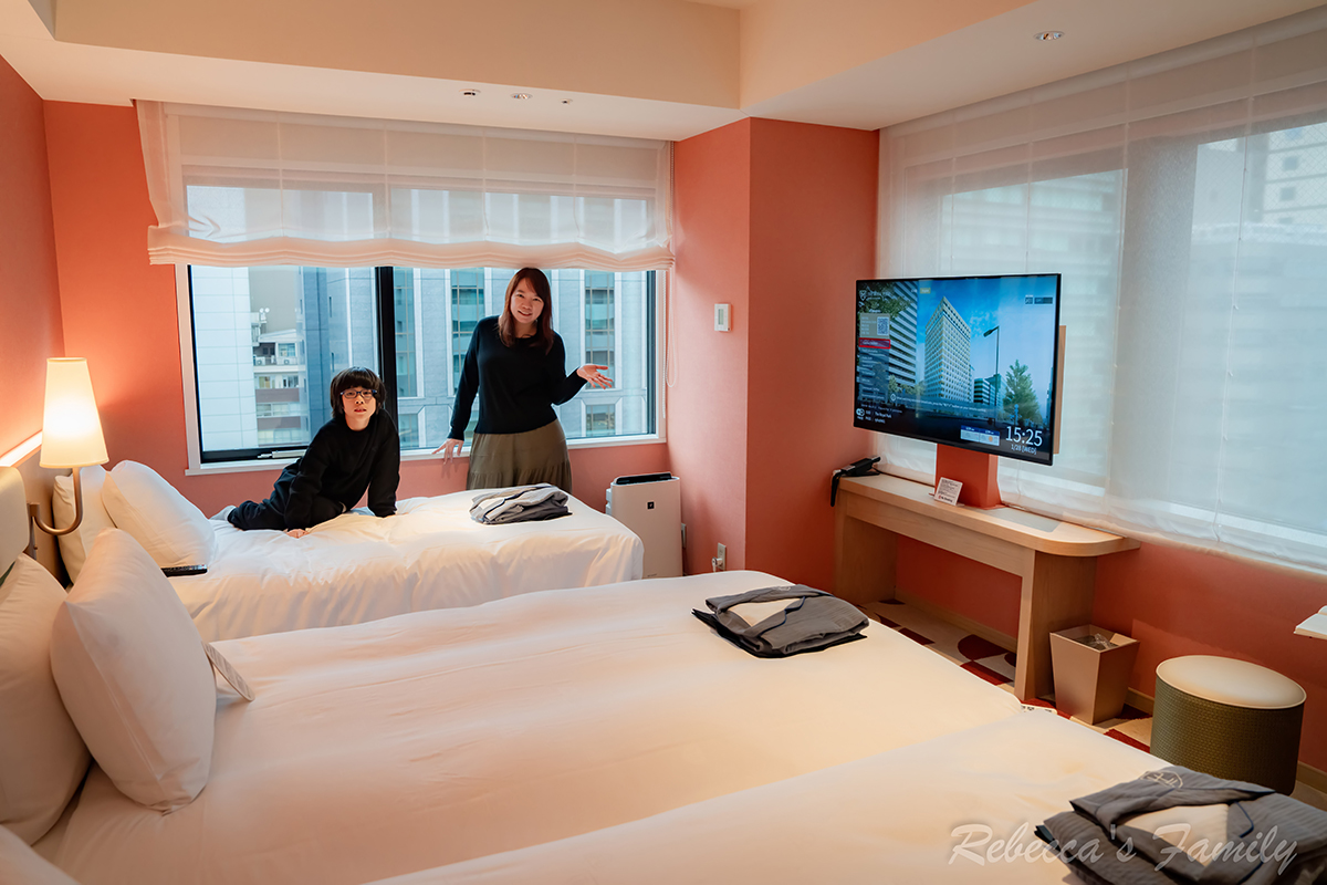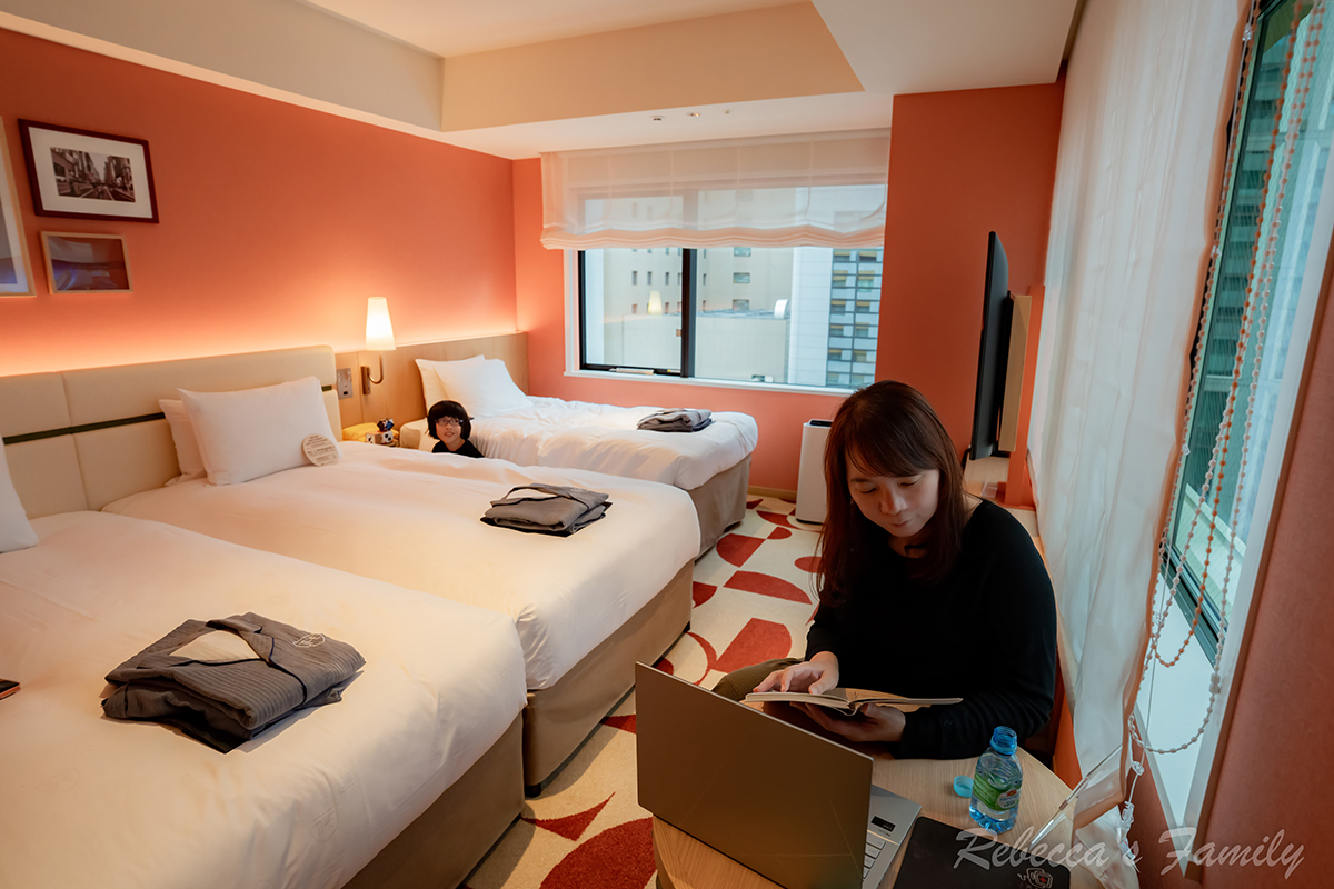 我們這次入住的是視野很好的「轉角雙床房」,一晚一萬五千台幣左右 (含早餐+ 加一床),但瑞貝卡是很講究採光和空間的人,為了舒適偶爾這樣享受,就從一間充滿大正浪漫氛圍的飯店開始。