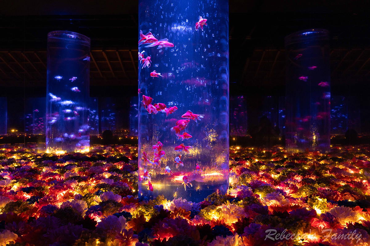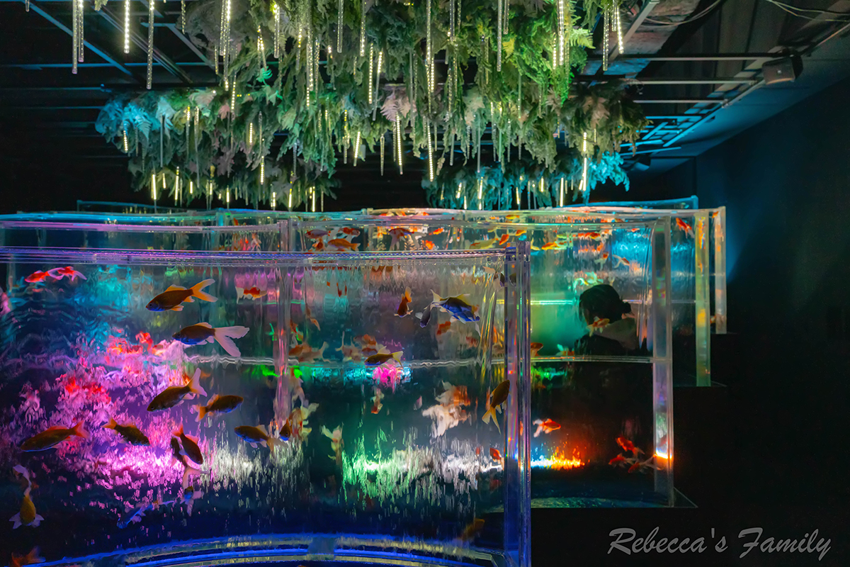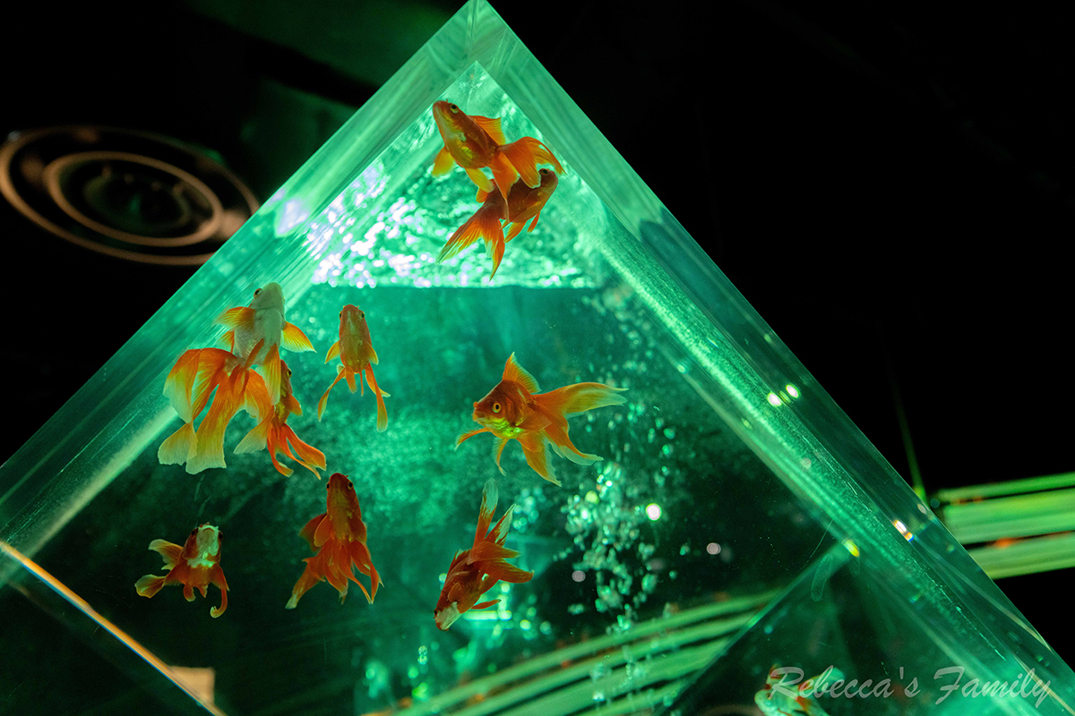 這是日本最大的金魚美術館,館內有圓形、波浪魚缸甚至是圓盤瓷器用了相當多的中國元素。