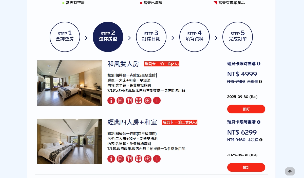 選擇房型和日期