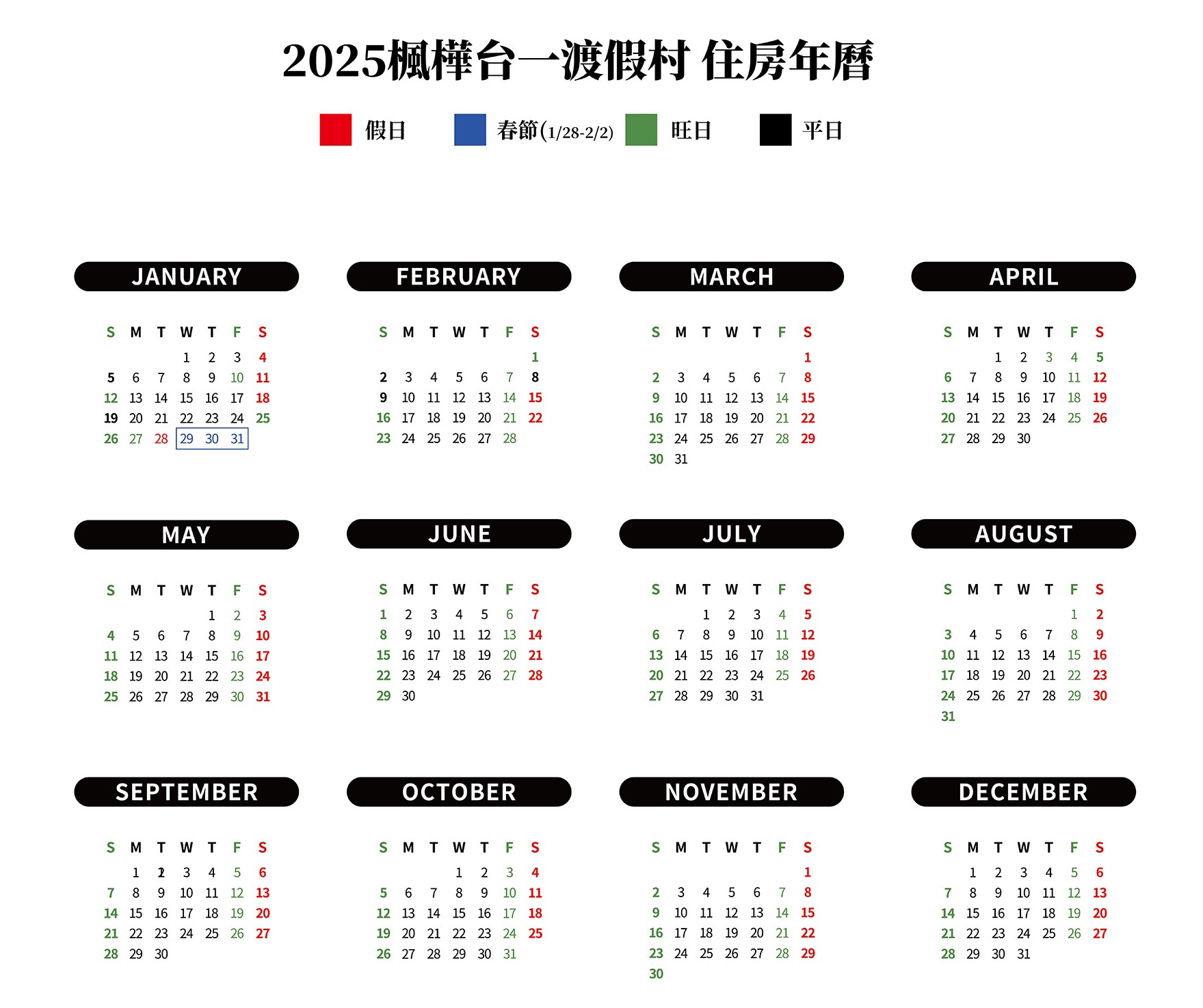 - 【大假日】農曆春節房價另計