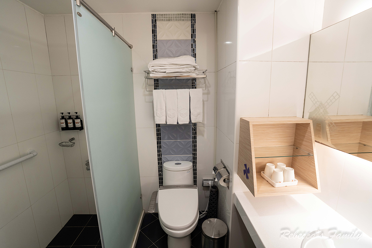 乾濕分離衛浴,免治馬桶,飯店自有品牌洗髮精、沐浴精、潤髮乳、TESCOM吹風機。