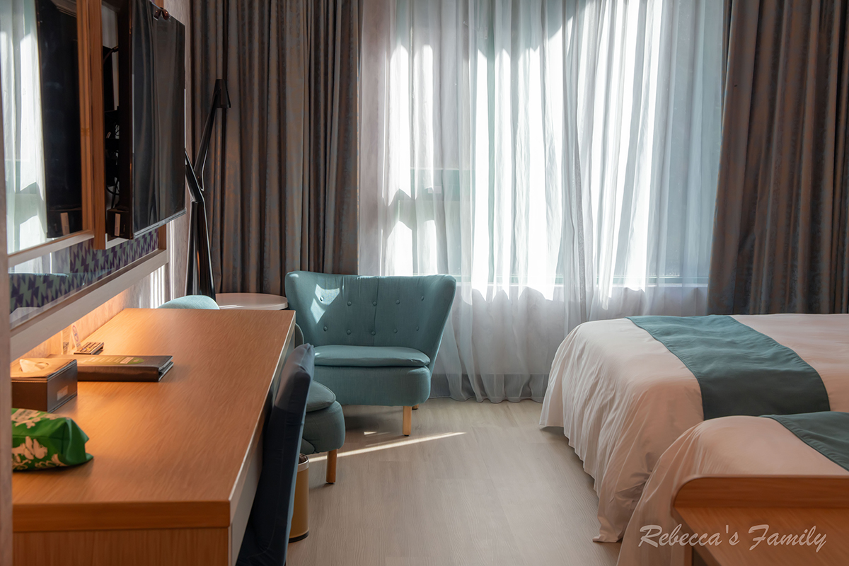 全館72間客房,繼2019年重新翻新之後,2025年起正逐步將各客房的地板換上更具質感的木質卡扣式地板。不僅觸感溫暖、踩踏舒適,也更適合孩子在房內爬行、玩耍。玄關更鋪設防水、防火的波隆地毯,呈現多層次的裝潢風格。收納空間改為方便取物的開放式衣櫃,爸媽整理行李更輕鬆。