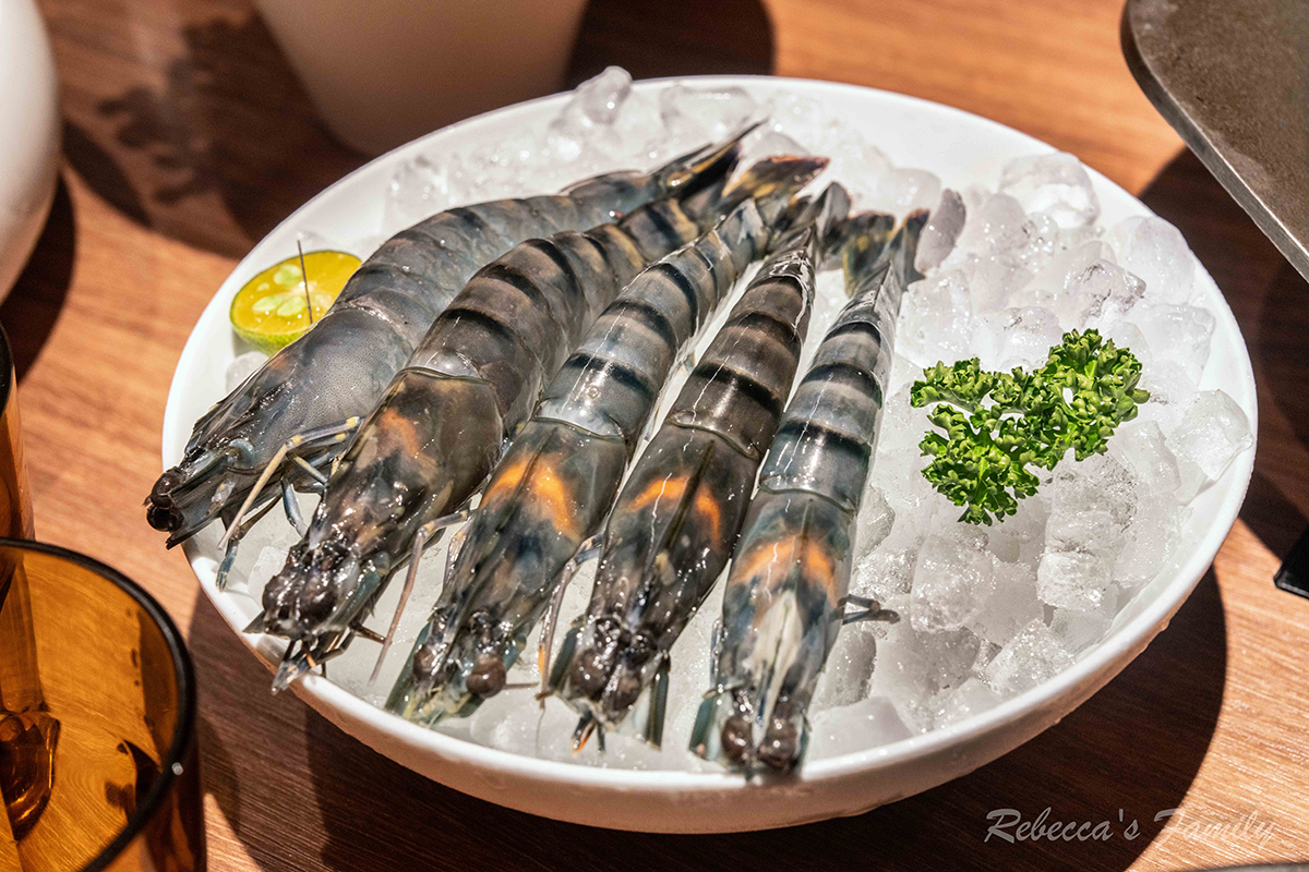 瑞貝卡覺得奶香濃郁,用整瓶鮮奶當場幫加進湯鍋,還會預留一杯鮮奶讓你加湯時可以補充味道,我自己又再多點了一盤蝦子。